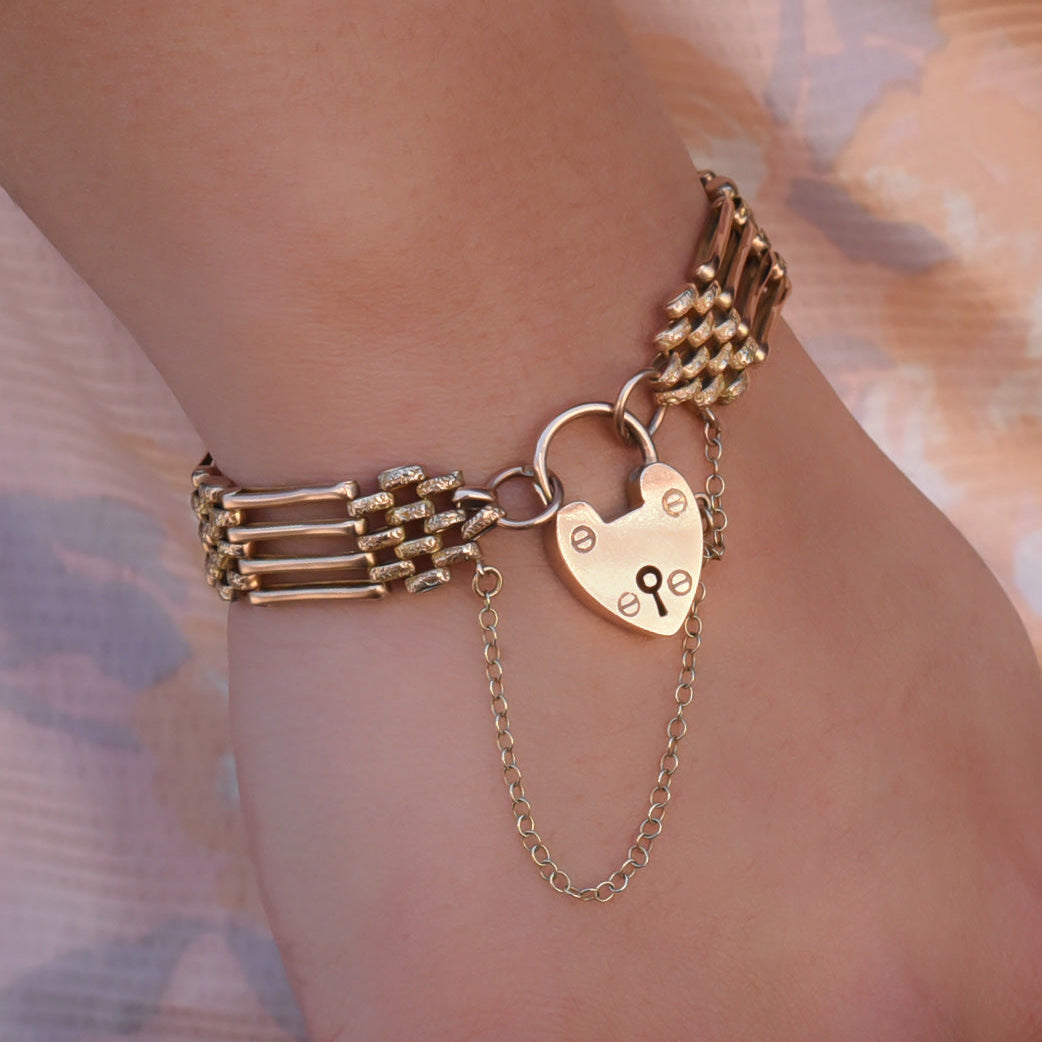 Victorian Heart Padlock Gate-Link Bracelet c1890