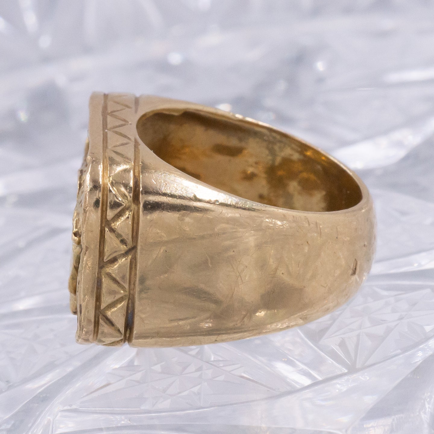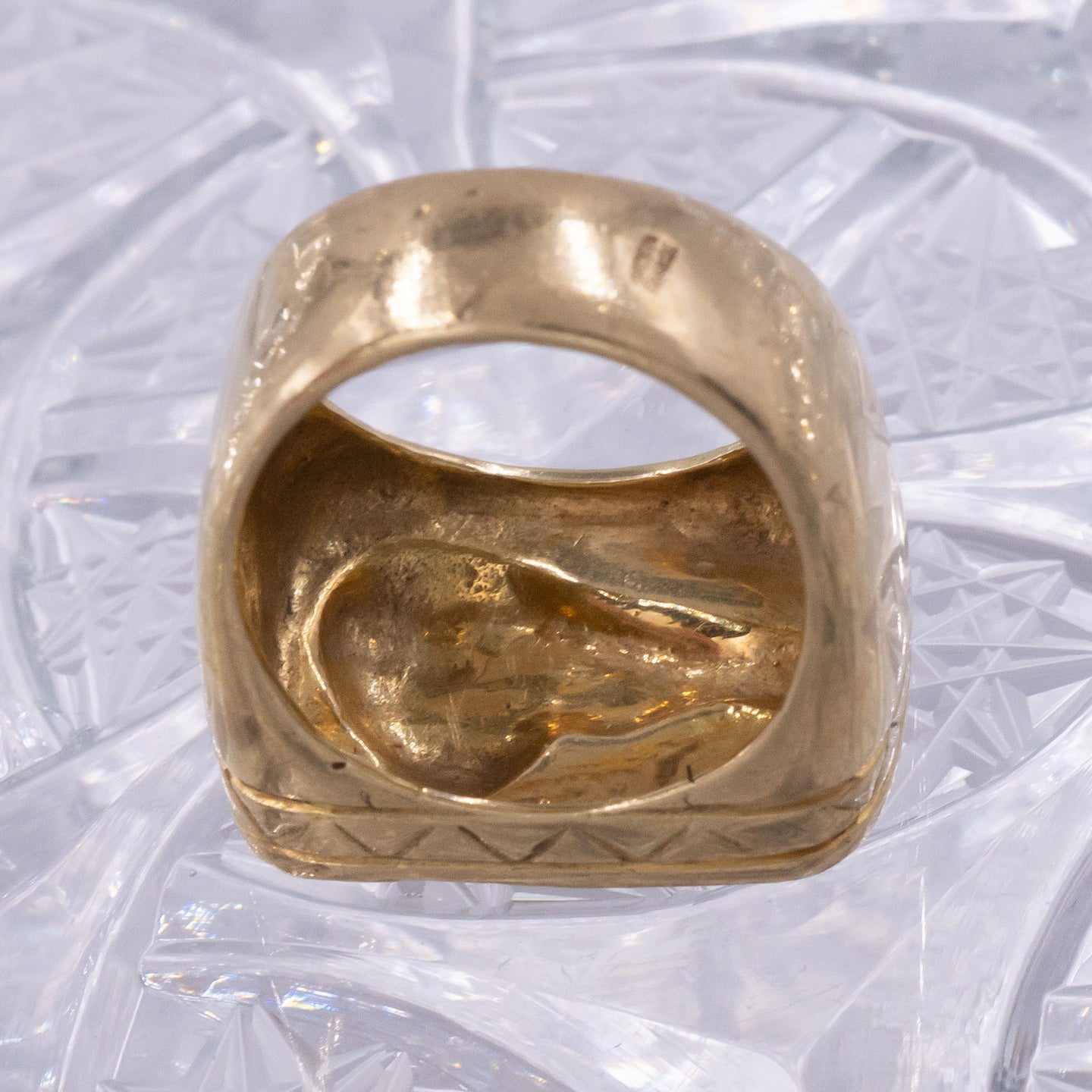 - Top of ring measures about 7/8 by 5/8 inch, for scale