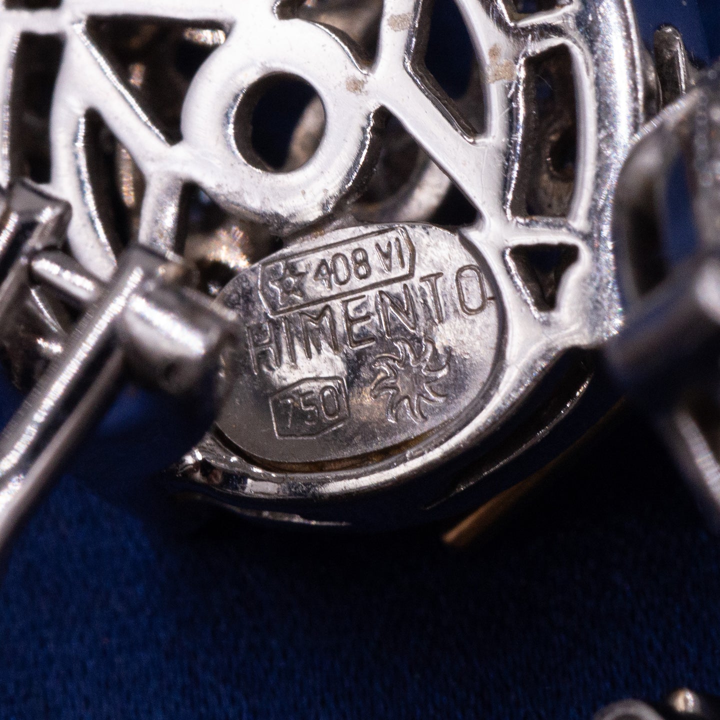 These fine pavé diamond earrings by Chimento are styled like sparkling compasses, its open spaces elegantly pointing towards bezel set diamonds that glitter in each cardinal direction. Chimento is known for their high quality Italian goldsmithing, as exemplified in these gorgeous bright white 18k gold button earrings. Each and every diamond is a brilliant round full-cut set tightly alongside the next. They come together in a dazzling display throughout the earrings' dynamic design. Set with posts for pierced ears, these earrings have omega clips that keep the earrings secure and sitting beautifully on the ear lobe. Perfect for adding a little sparkle to everyday looks that transition seamlessly into date nights and evenings out on the town!