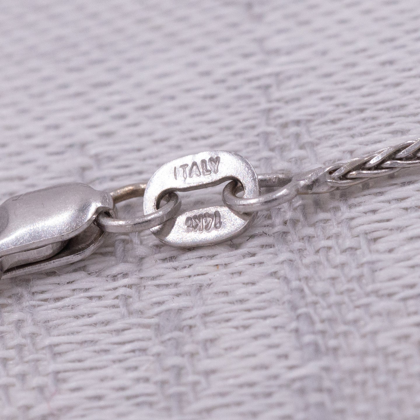 Finely constructed in Italy, this wheat style chain is smooth, silky soft, and easy to wear! This white gold necklace wears beautifully all on its own and also pairs perfectly with charms and pendants.