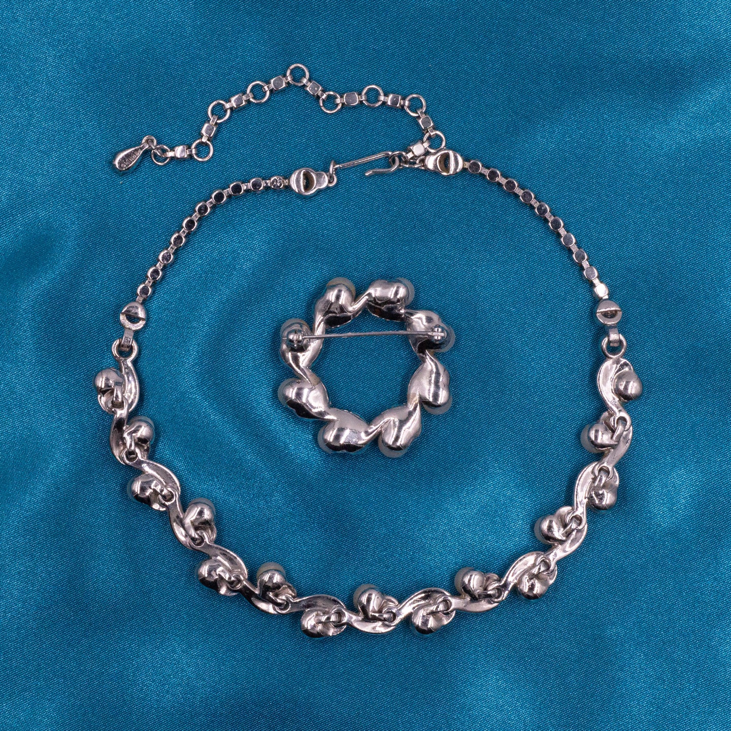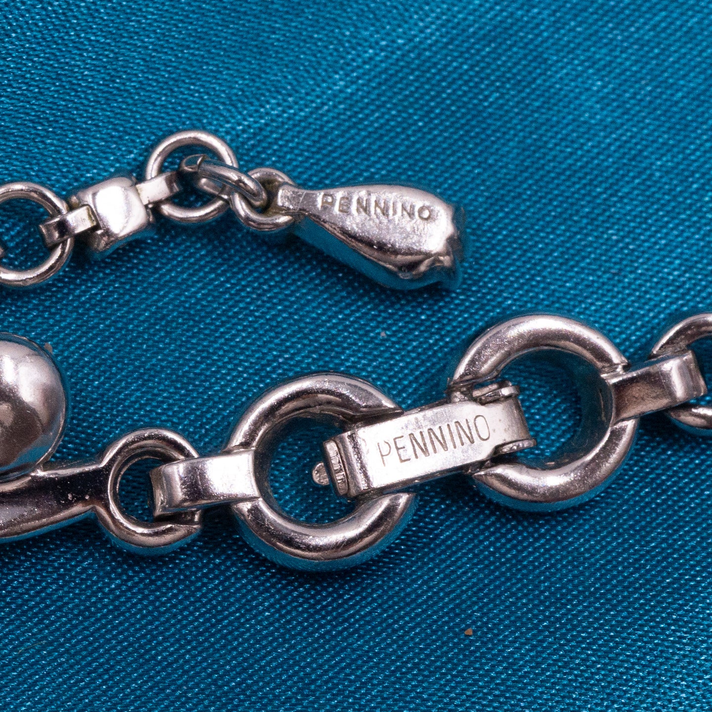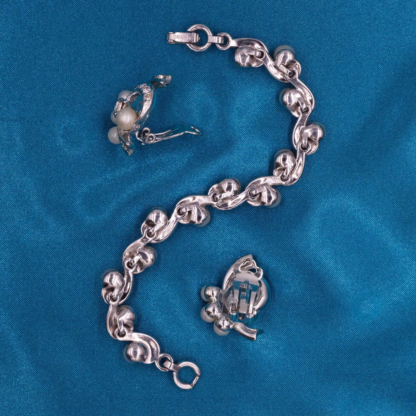 Because of their high standards, Pennino jewelry was always in high demand. Their beautiful works of jewelry art are very collectible even today, when it is difficult to find beautifully-preserved costume jewelry from the midcentury-era, not to mention a complete 4-piece set! Pennino was well-known for their amazing renditions of fine jewelry, and this 4-piece set is no exception. Exquisite and sure to catch the eye of any collector – it won't last long in our shop!