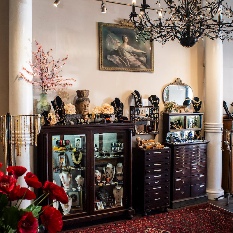 No other shop is quite like Pippin. Time and again, visitors remark that a trip to our shop is akin to rummaging through their grandma’s jewelry box. The interactive nature of the store allows you to touch and try on any piece you’d like in a completely unhurried, low-pressure environment. No appointment necessary.